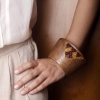 Sensational design of this bangle is beyond comprehension.The incorporation of embroidery into the smooth surface of wood elevates the warm feeling of protection. It is an earthly design that can be accompanied by a smart casual outfit.