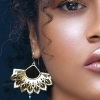 For a nomad Middle Eastern woman, Sun means love, heat and passion. Her innate beauty is sparkled with sunlight when she glances at her lover. These shiny bronze earrings with brown touch creates an aura of mystery around your neck, Sun Rays can uplift any hairstyle, skin tone or make-up.